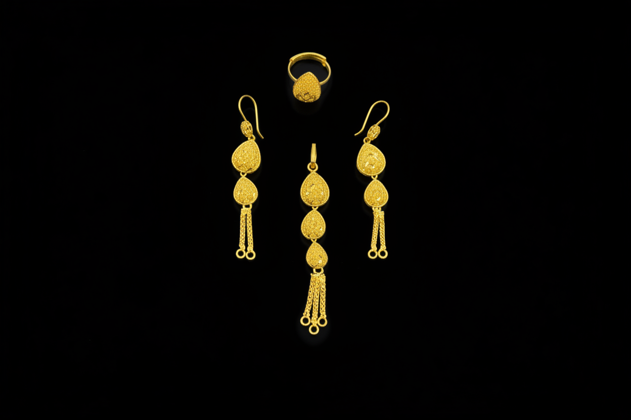 21K Gold Starburst Round Earrings & Pendant Set – 12 Grams