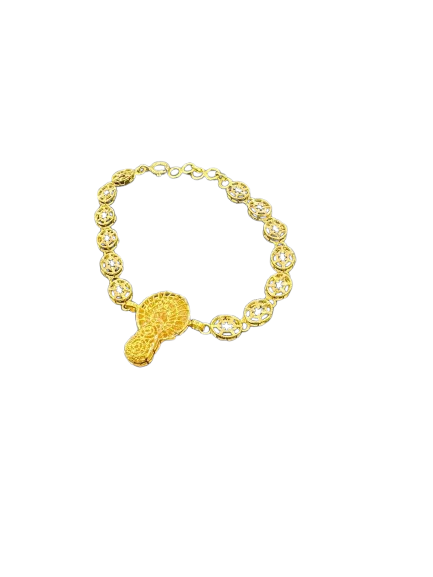 Experience the stunning elegance and luxury of our 21K- Bracelet Bahrani Design! Crafted with 5.5 grams of pure gold, this beautiful bracelet features a unique Bahrani design that will set you apart from the crowd. Make a statement and elevate your style with this exquisite piece of jewelry.