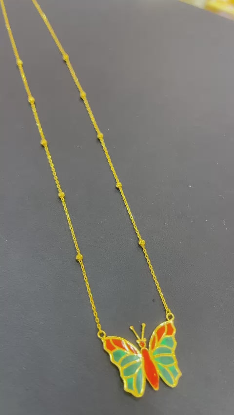 Indulge in the captivating beauty of this 21K- Butterfly Turkish Necklace! Made with the finest craftsmanship and materials, this stunning necklace features a delicate butterfly design in 21K gold. A true statement piece that adds elegance to any outfit. Own it and feel enchantingly beautiful!