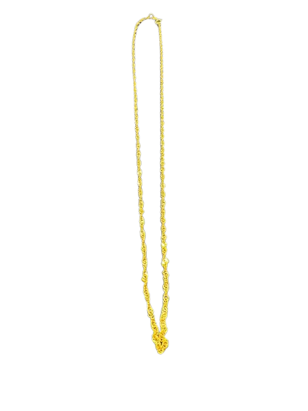 The 21k- Disco Chain Dubai Design 3.4 Gram boasts a stunning design and lightweight yet durable 21k gold construction. This intricate chain is sure to make a statement and add a touch of elegance to any outfit. Expertly crafted and weighing only 3.4 grams, it is perfect for everyday wear and will make a great addition to any jewelry collection.