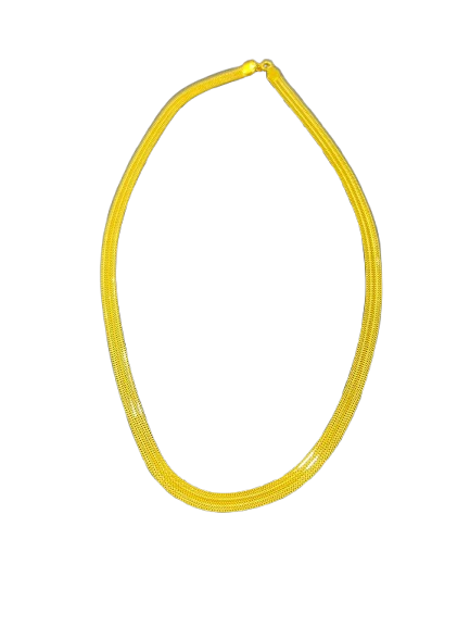 This exquisite 21k flat chain features a unique Singapore design, adding elegance and sophistication to any outfit. Weighing 7.6 grams, it is light yet durable, making it perfect for everyday wear. Own a piece of luxury with this 21k flat chain.