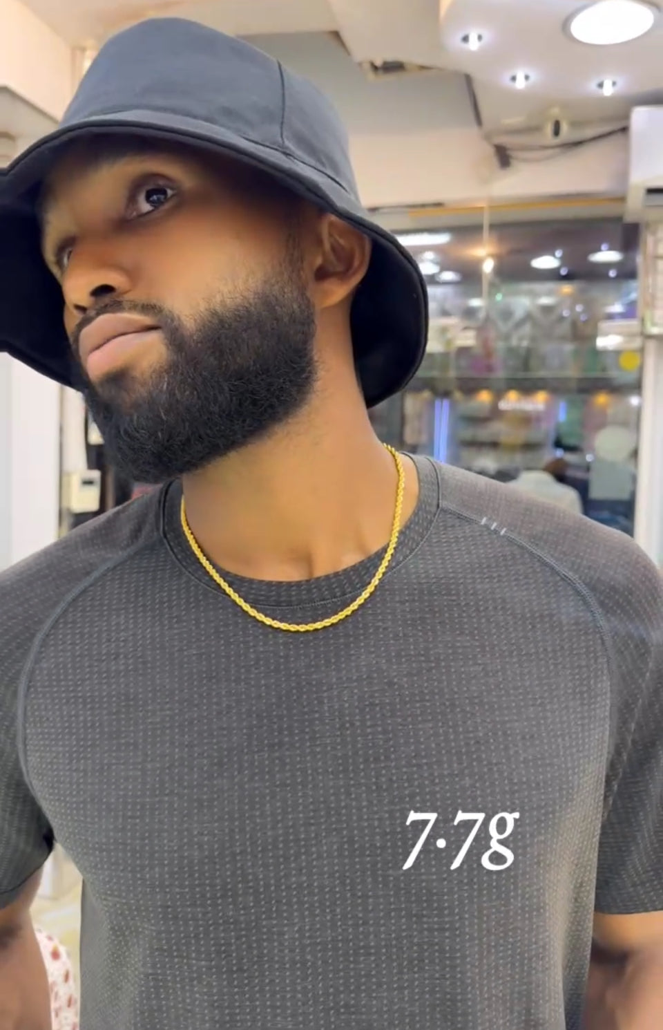 Elevate your style with this classic 21K gold rope chain, crafted with precision in Singapore and designed for men who value timeless elegance. Weighing 7.7 grams, this versatile piece features a durable rope-style weave, making it perfect for both daily wear and special occasions.