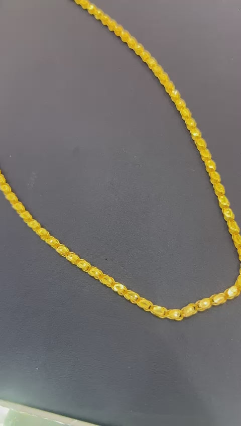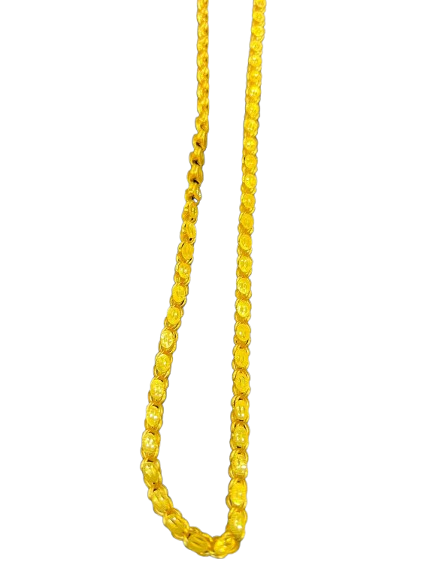 This 21k- Halabi Chain Dubai Design weighs 10 grams and boasts a stunning, intricate design inspired by the city's rich culture. Crafted with 21k gold, this chain is both stylish and durable, making it the perfect addition to any jewelry collection.