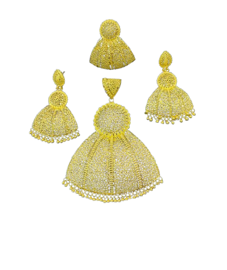 This 21k- Indian pendant set, weighing 55.1 grams, is an elegant and traditional addition to your jewelry collection. Crafted with meticulous attention to detail, this pendant set showcases the rich heritage and cultural significance of Indian jewelry. Make a statement and embrace the beauty of Indian craftsmanship with this stunning pendant set.