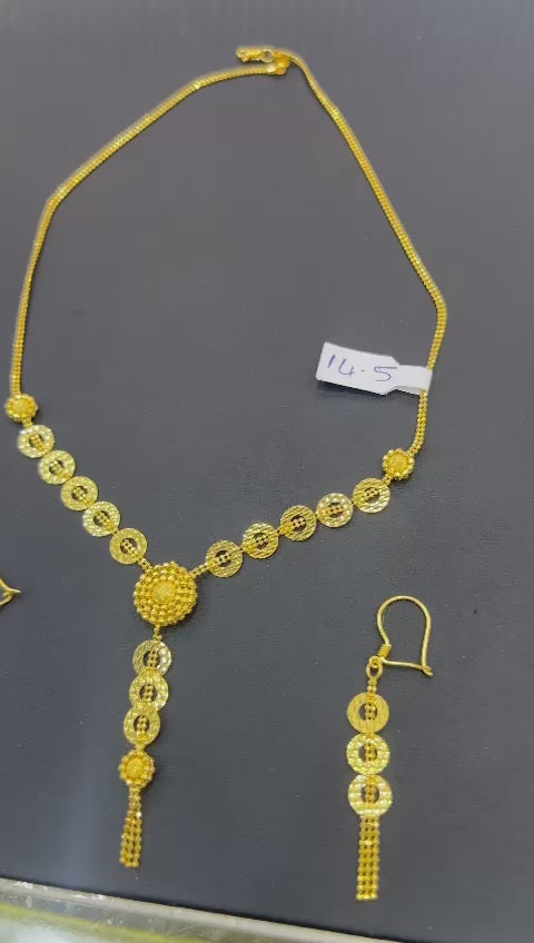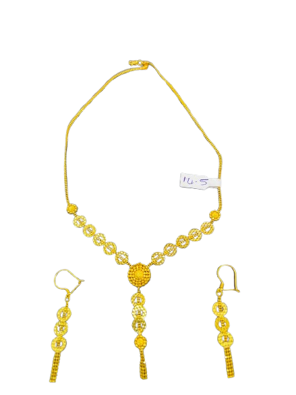 Elevate your style with our stunning 21k- Necklace Singapore Design! Crafted with 14.5 grams of pure quality, this unique design exudes elegance and sophistication. Make a bold statement and experience the luxurious feel of this exquisite necklace. A must-have for any fashion-forward individual.