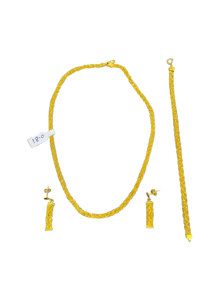 Upgrade your style with our 21k- Necklace Singapore Design! Made with 18.0 grams of high-quality material, this necklace is both elegant and durable. Elevate any outfit and let our intricate design be the centerpiece of your collection. Experience luxury and quality in every wear. Order now!