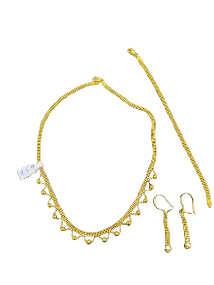 Experience the luxurious elegance of our 21k- Necklace Singapore Design. Made with 20.9 grams of pure gold, this exquisite piece exudes sophistication and style. Elevate your look and make a statement with this stunning necklace. Add a touch of opulence to your wardrobe with this must-have accessory!