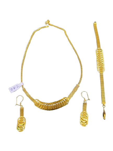 This 21k necklace, inspired by the stunning design of Singapore, weighs 28.2 grams for a truly luxurious feel. Handcrafted with intricate details, this piece is a timeless addition to any jewelry collection. Experience the ultimate combination of style and quality with this exquisite necklace.