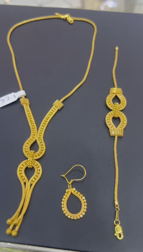 Discover the elegance of our 21k- Necklace Singapore Design, weighing at 37.1 grams. Its intricate Singapore design is sure to make a statement and add a touch of luxury to any outfit. Make a lasting impression with this stunning piece of jewelry.