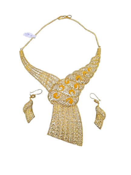 Experience the luxurious elegance of our 21k necklace with a stunning Turkish design. Weighing 55.5 grams, this necklace is the perfect statement piece for any occasion. Elevate your style and showcase your taste for high quality gold with our exquisite 21k- Necklace Turkish Design 55.5 Gram.