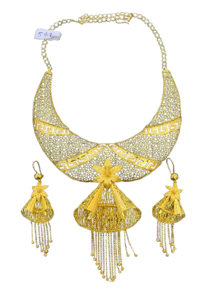Experience the luxury and beauty of Turkish design with our 21k necklace, weighing in at 59.2 grams. This statement piece will elevate any outfit with its intricate details and high-quality gold. Stand out from the crowd and add a touch of elegance to your wardrobe. Own it now!