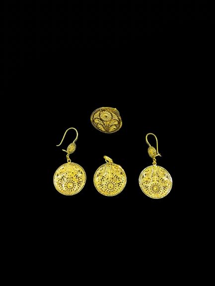 Indulge in the exquisite beauty and cultural heritage of the Arabian Gulf with our 21k Pendant Set Bahrani. Crafted with 13 grams of pure gold, this stunning set showcases traditional Bahrani design. Elevate your style and embrace the luxurious benefits of owning this unique piece.