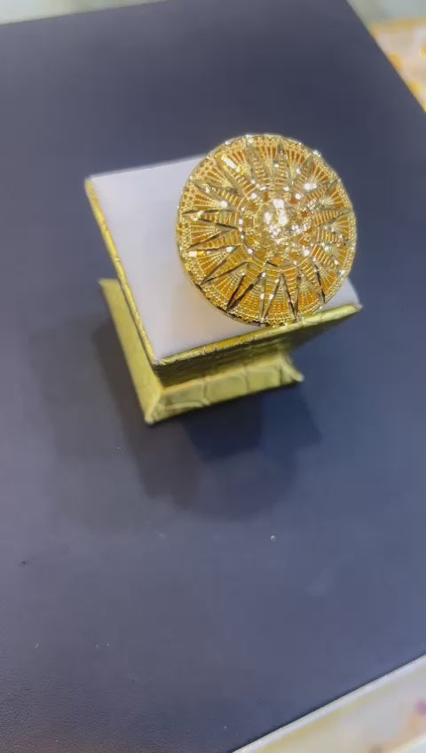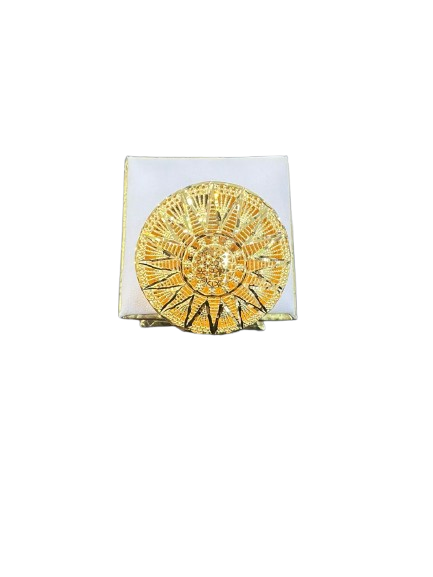 This 21K Ring Bahrani Design, weighing 9.5 grams, is a stunning piece of jewelry crafted with precision and expertise. Made of 21K gold, it boasts a unique design that radiates elegance. Perfect for those with refined taste and appreciation for quality. Upgrade your collection today.