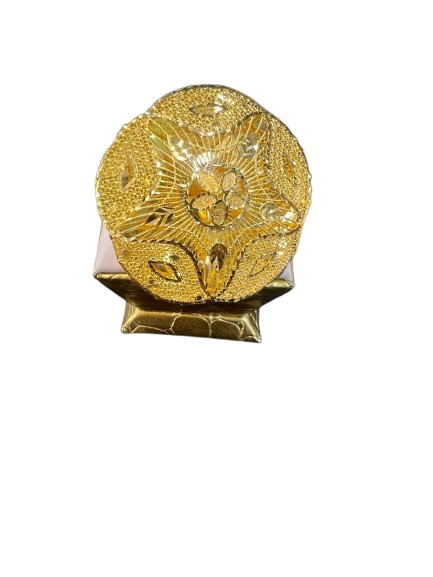 Expertly crafted with 21k gold, this Bahrani design ring weighs an impressive 12 grams. Elevate your style with this luxurious and timeless piece that boasts superior quality and craftsmanship. Perfect for those looking for a sophisticated and unique accessory.