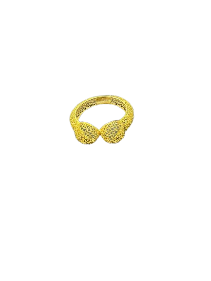 Expertly crafted with 21k gold, this Indian designed ring is lightweight at just 2.4 grams, making it comfortable for extended wear. The intricate design showcases the rich culture and heritage of India, while the high-quality craftsmanship ensures a durable and timeless piece of jewelry. Perfect for any occasion, this ring is sure to make a statement.