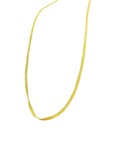 Crafted with precision and expertise, our 21K-Singapore chain boasts a sleek design and an ultra-lightweight 3.7 gram weight. Perfect for everyday wear, its intricate chain pattern adds a touch of elegance to any outfit. A must-have for those seeking a stylish and refined accessory.