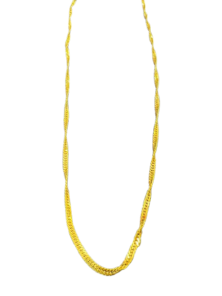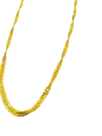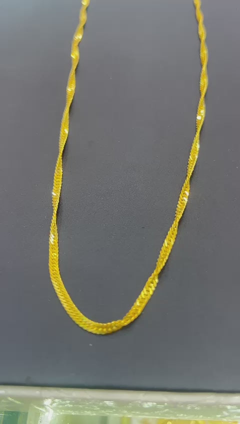 Crafted with exquisite 21k gold, this Singapore design chain is a must-have for any jewelry collection. Its unique design adds a touch of sophistication, making it perfect for any occasion. Weighing 10 grams, it's both lightweight and durable, providing both style and practicality. Elevate your style with this stunning chain.