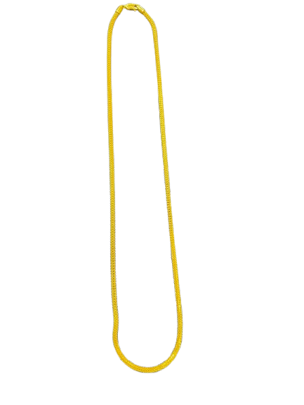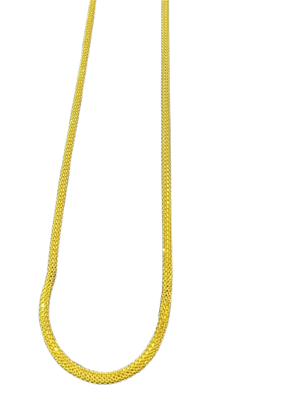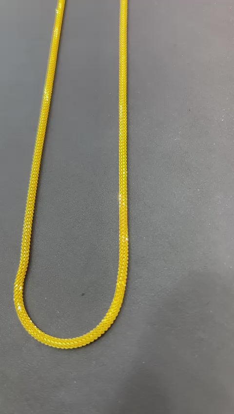This 21k- Singapore Design Chain is 13.4 grams and features a unique design inspired by the city-state of Singapore. Made from high-quality 21k gold, this chain is a beautiful and valuable addition to any jewelry collection. Elevate your style and showcase your appreciation for fine craftsmanship with this luxurious chain.