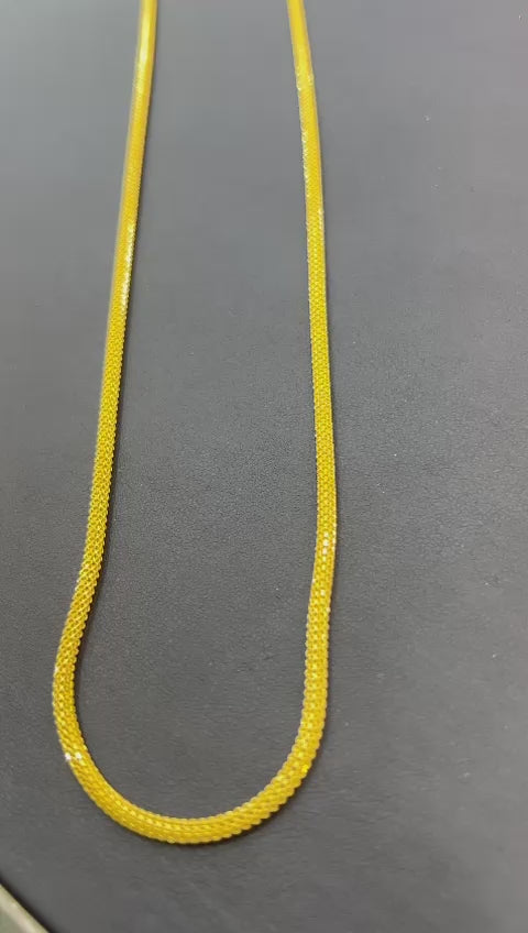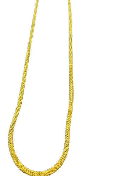 Introducing the 21k- Singapore Design Chain 16.3. Crafted with precision and expertise, this luxurious chain features 21k gold and a unique Singapore design. Experience the perfect blend of style and value with a chain that is sure to elevate any outfit.