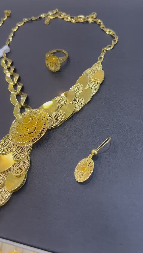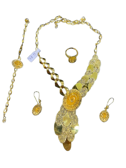 Introducing the 21k Turkish Design 38.5 Grams, a stunning piece of jewelry crafted with expertise. Made of 21k gold, this Turkish design necklace adds a touch of glamour to any outfit. With a weight of 38.5 grams, it's also a substantial piece to add to your collection. Perfect for all occasions.