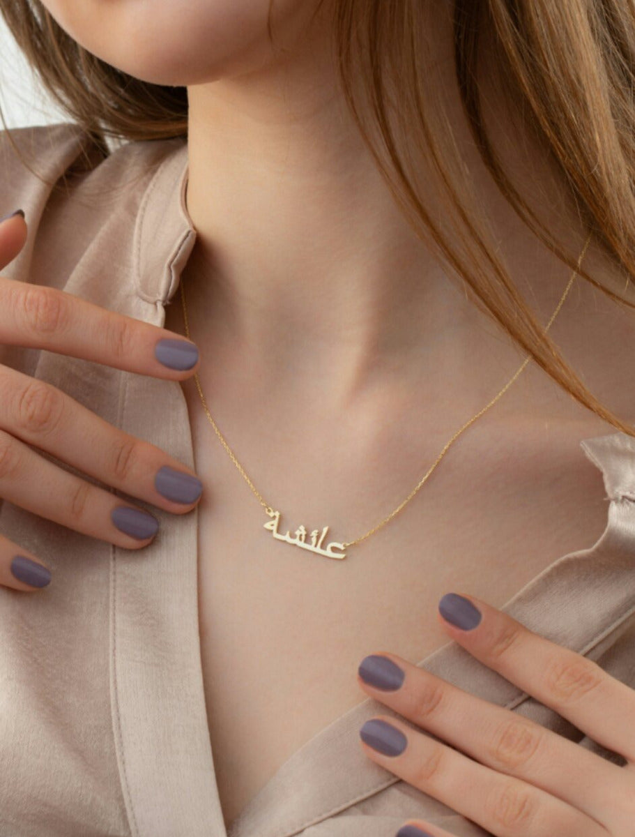 Experience the beauty and elegance of Arabic with our customizable Plain Name in Arabic Necklace. Personalize this timeless piece and make it truly your own. Express yourself with this unique and meaningful necklace.