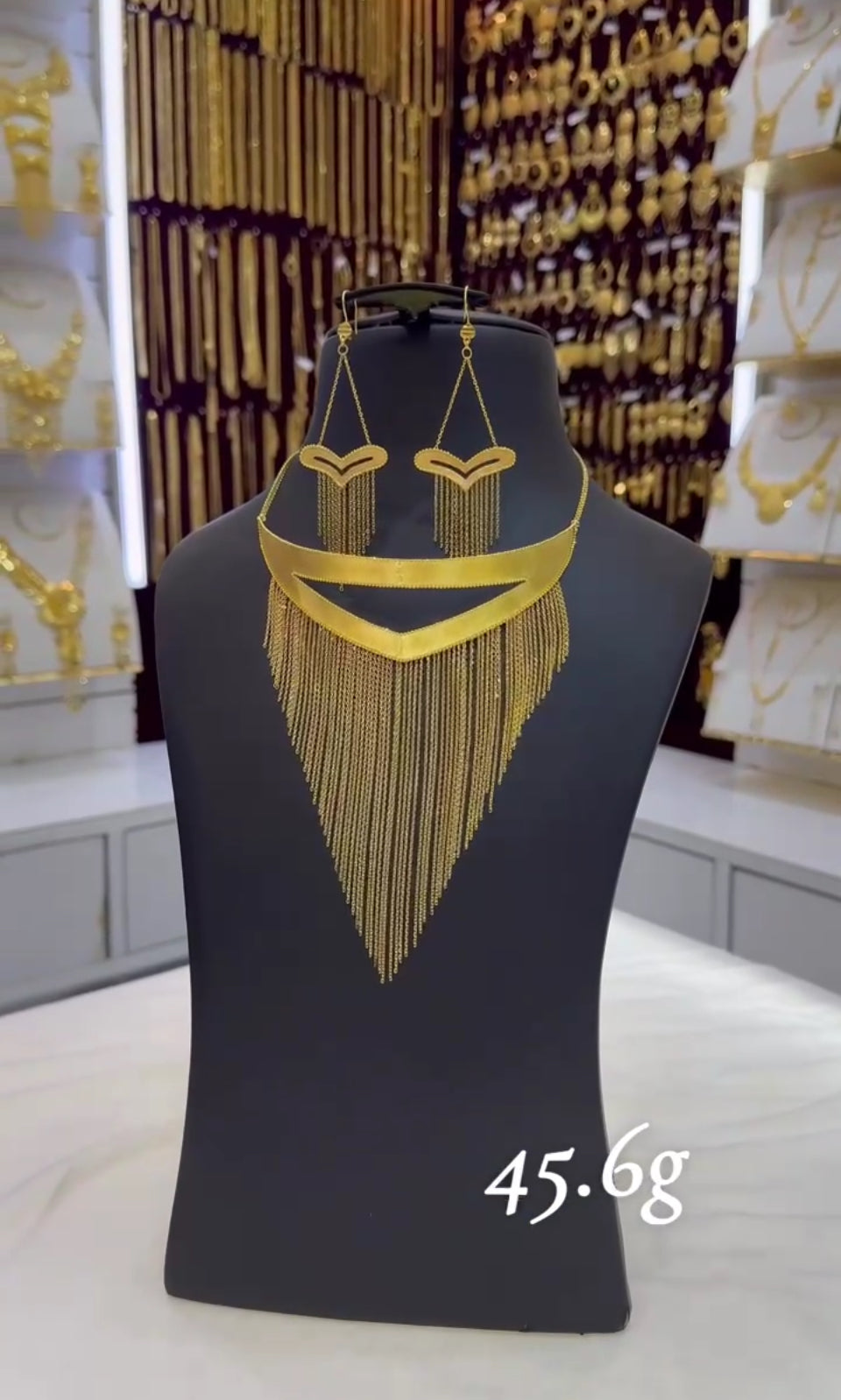 A luxurious Arabic-style Singapore choker crafted in 45.6 grams of gleaming gold. Featuring the classic twisted Singapore chain design enhanced with delicate pearls, this piece embodies elegance and sophistication. Intricate Arabesque motifs adorn the choker, making it perfect for weddings, festive occasions, or special celebrations. Lightweight yet opulent, it sits gracefully around the neck, catching the light beautifully with every movement.