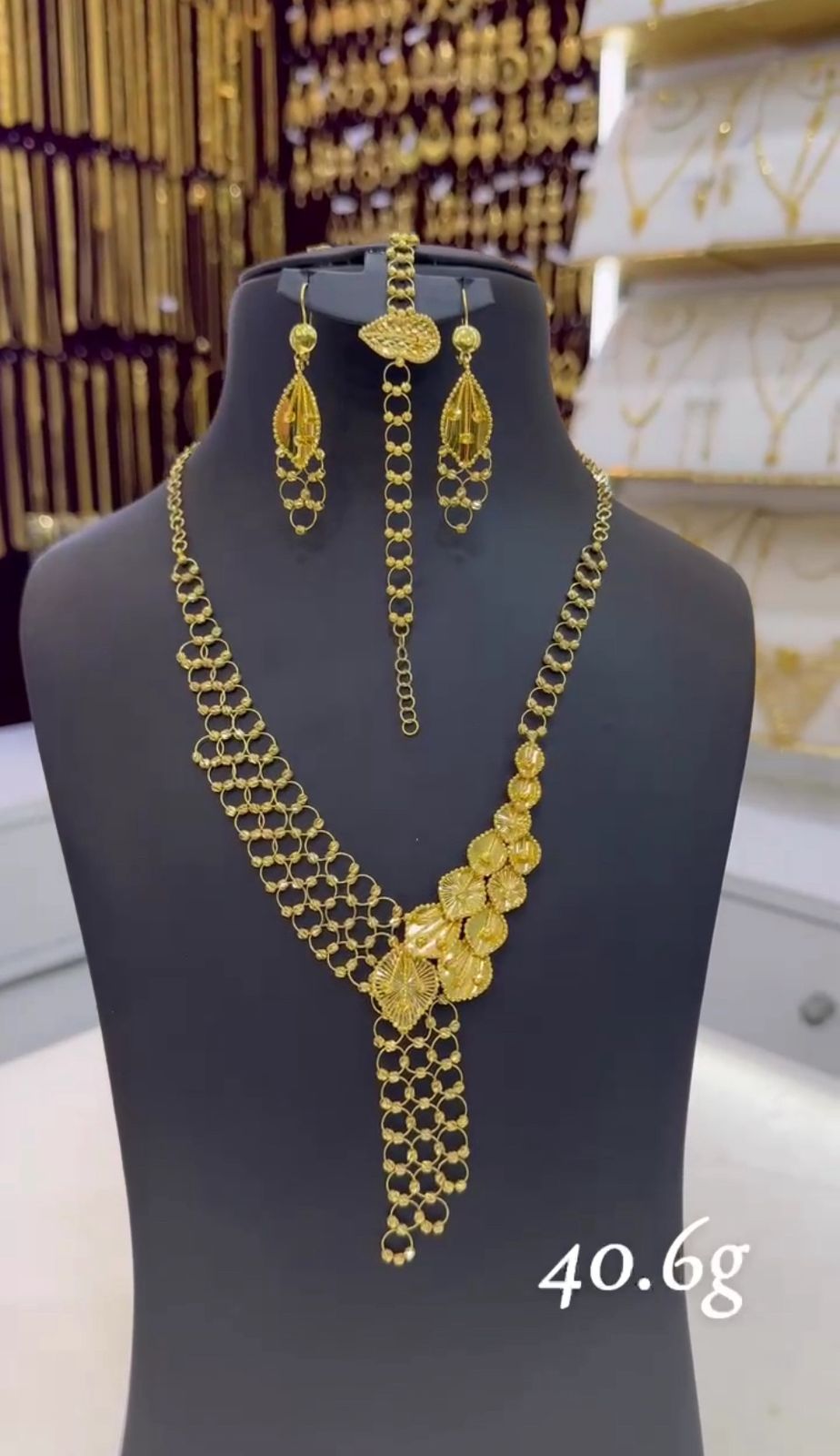 Weighing 40.6 grams of 21 karat pure gold, the Rosette Chain set is both elegant and statement-making — perfect for weddings, cultural events, and heirloom collections.