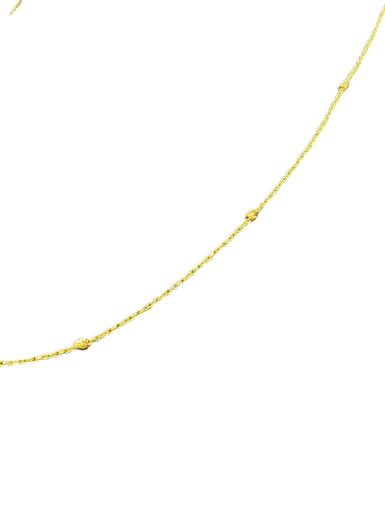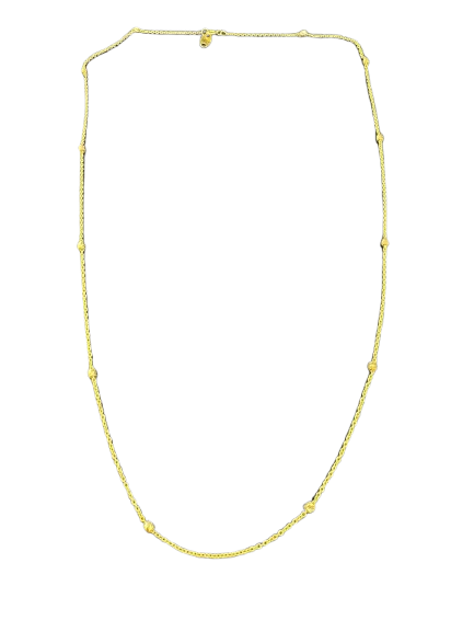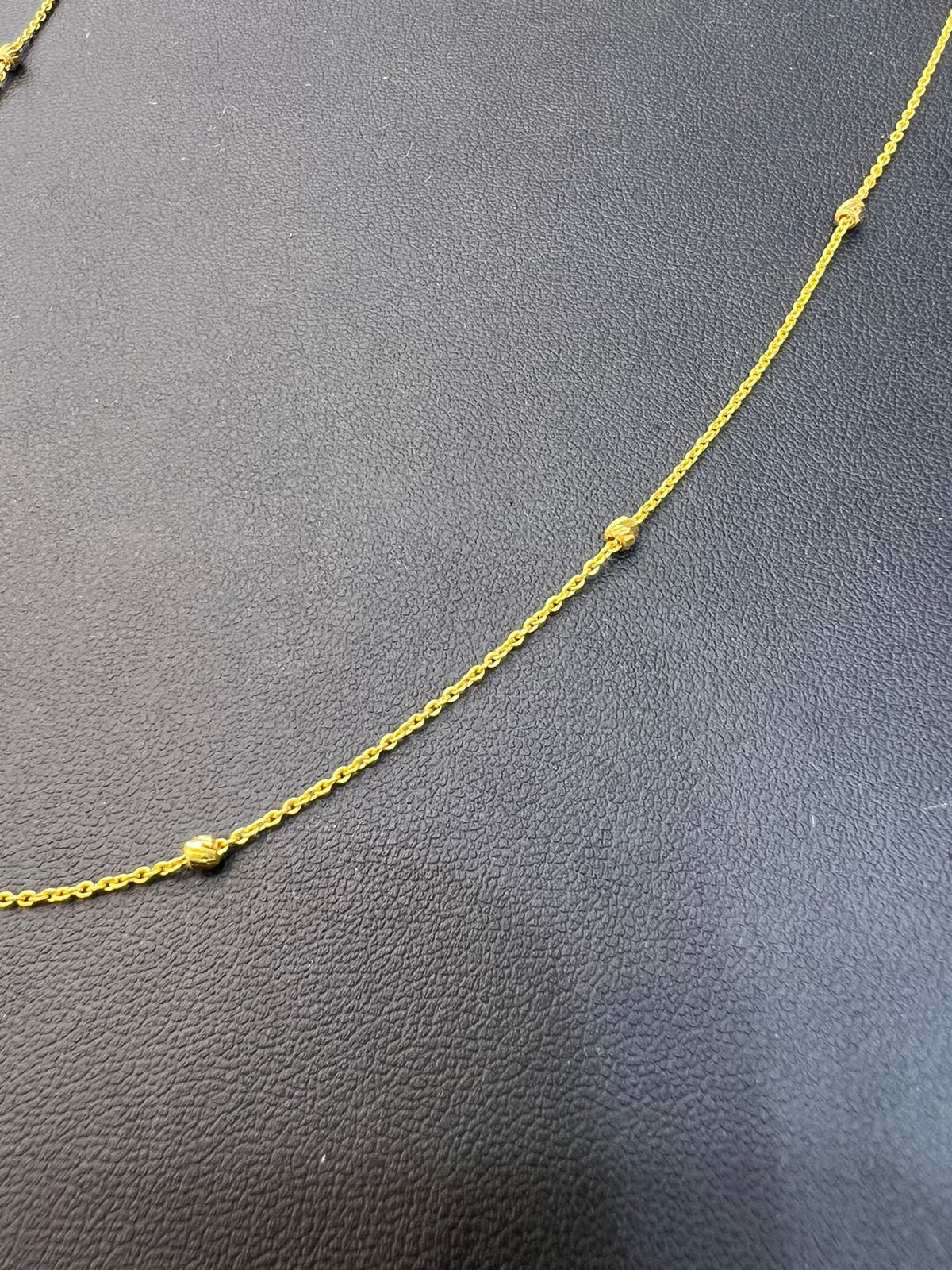 This Tiny Bead Chain weighs 2.9 grams, making it a lightweight and delicate option. Its small beads add a subtle touch of elegance to any outfit. Crafted from high-quality materials, this chain is durable and perfect for everyday wear. Upgrade your jewelry collection with this versatile and stylish piece.
