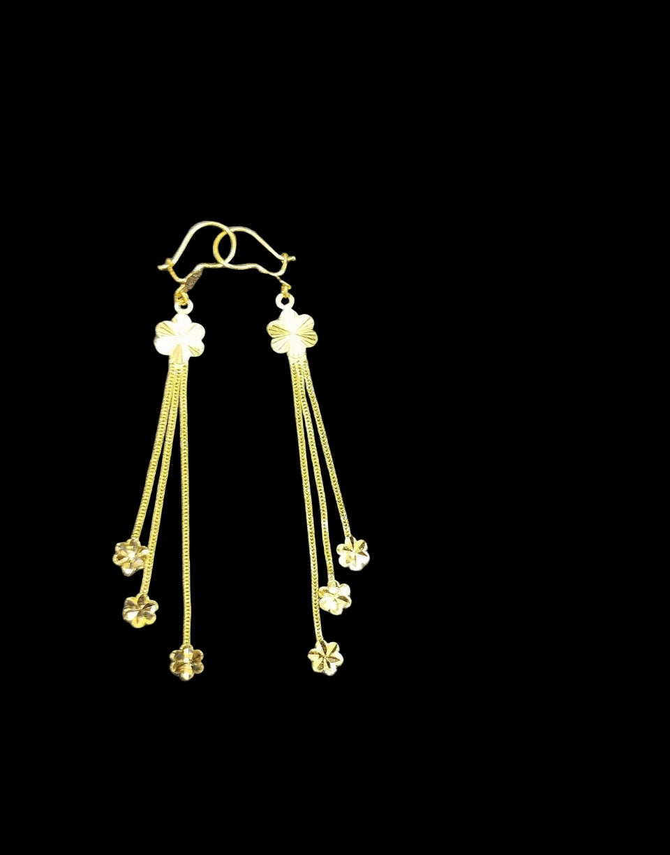 This Triple Dangling Starburst earrings weigh 3.9 g and add a touch of elegance to any outfit. Comprised of three star-shaped pendants, these earrings are perfect for a night out or special occasion. Made of high-quality materials, these earrings are durable and stylish.