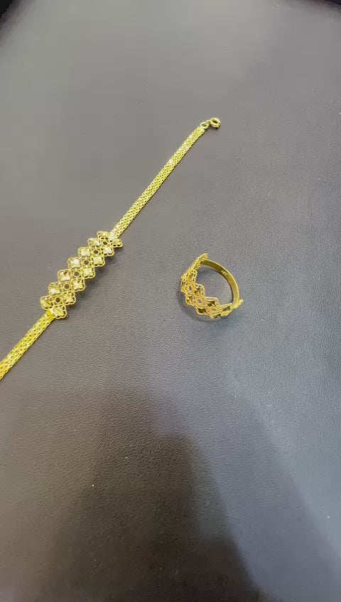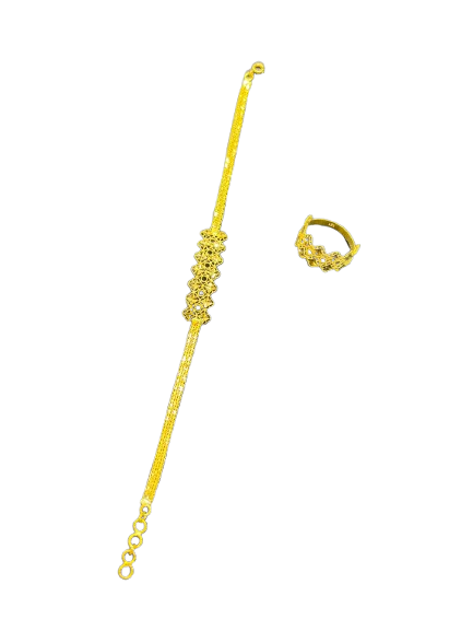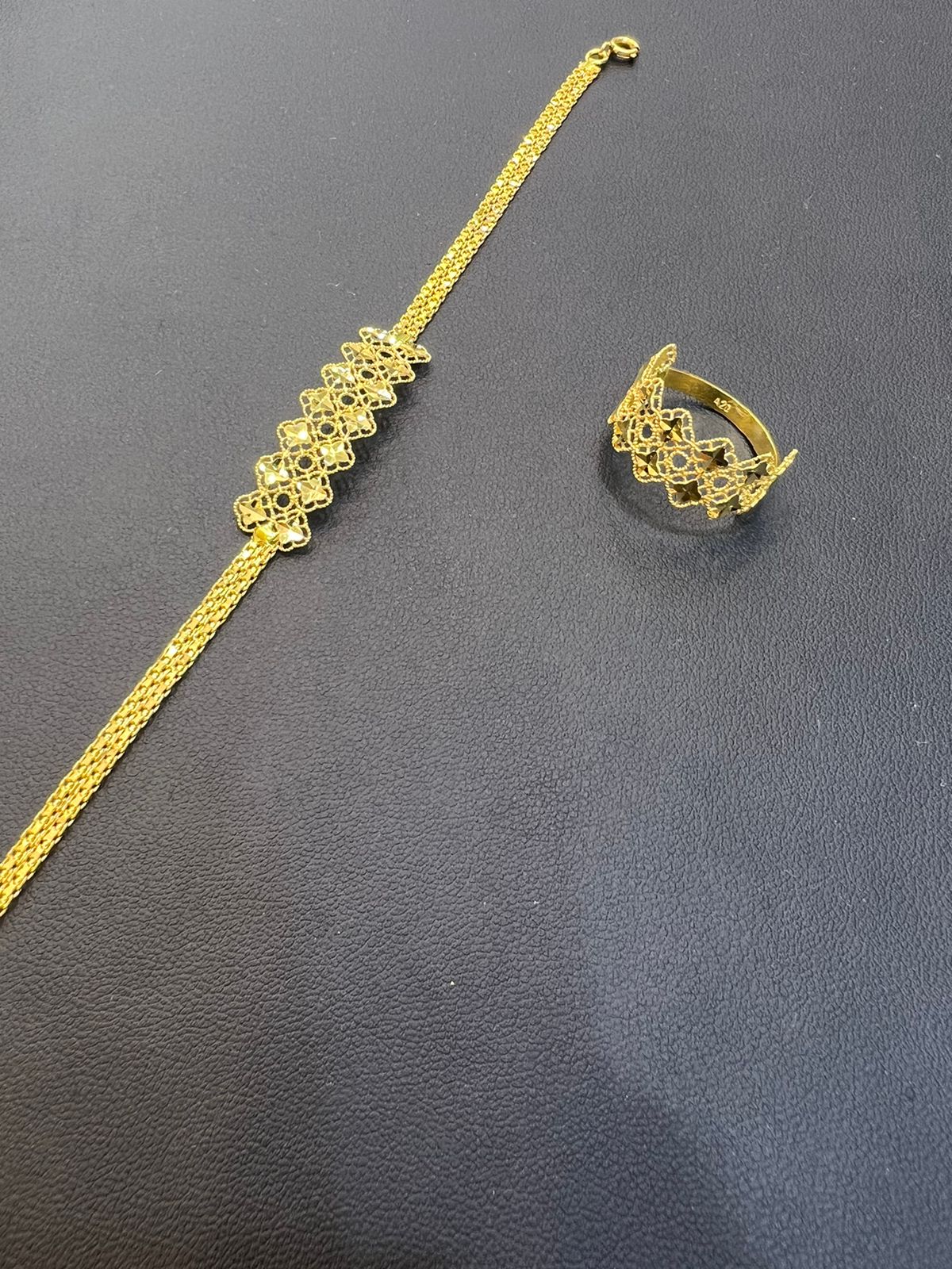 Elevate any outfit with the luxurious Viena Bracelet & Ring weighing a total of 7.5 grams. Handcrafted with precision, this exquisite piece of jewelry is a perfect marriage of elegance and durability. Complete your look with a touch of sophistication and style.